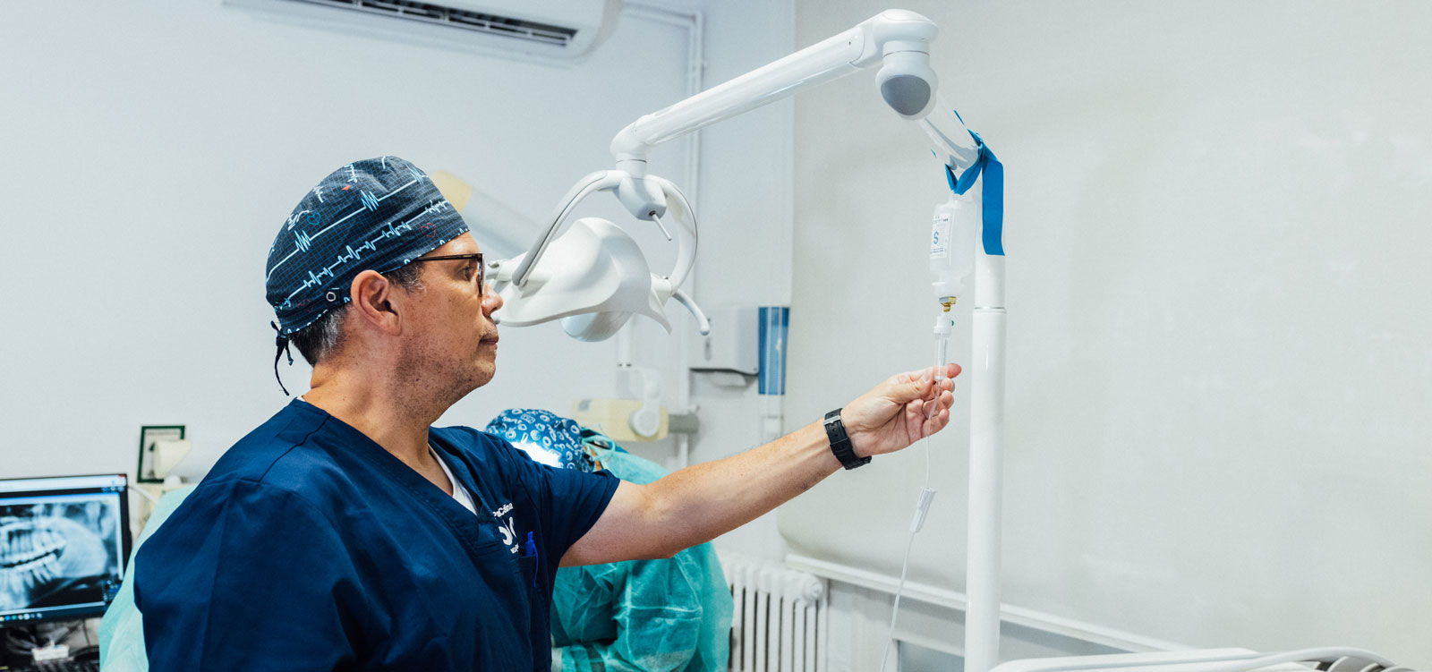 El método más habitual es la sedación consciente intravenosa, una técnica rápida, eficaz e indolora. Durante todo el procedimiento, un médico anestesiólogo acreditado monitoriza de forma continua al paciente, ajustando la profundidad de la sedación según sus necesidades.